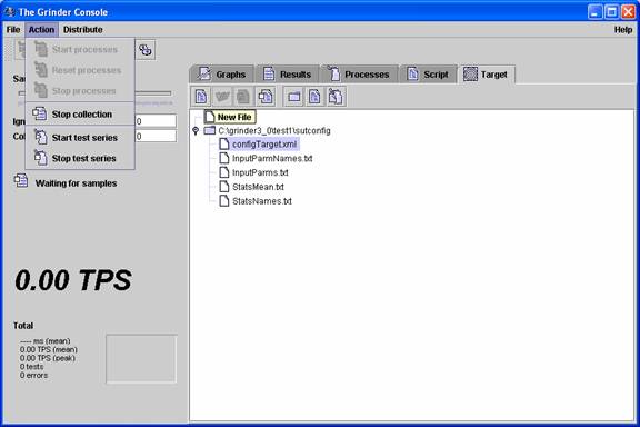 A test in the series is finished when the specified number of samples is reached, as shown in the Console UI while the test is running. A listener callback signals this thread to wake up. At that point statistics from the CumulativeStatisticsTableModel object are read and written to the Statistics text file. Finally, this Grinder Process Control thread signals the JMX Command Process Control thread described above and the configuration process continues.