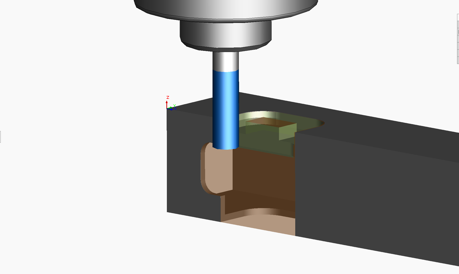 Next, the ‘Simulate Toolpath’ command is used to animate the end mill moving according to the toolpath above.