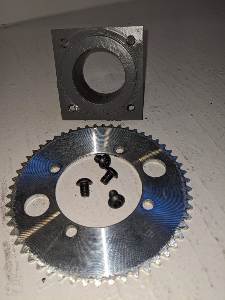 - Lathe facing a 1/16″ boss registration feature matching the sprocket ID to ensure concentricity of the sprocket and collar.