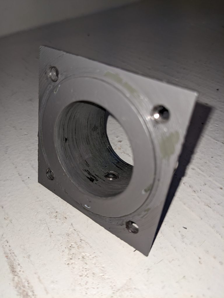 - CNC/manual mill drilling/tapping 4 sprocket mounting screw holes at the corners of the squares.